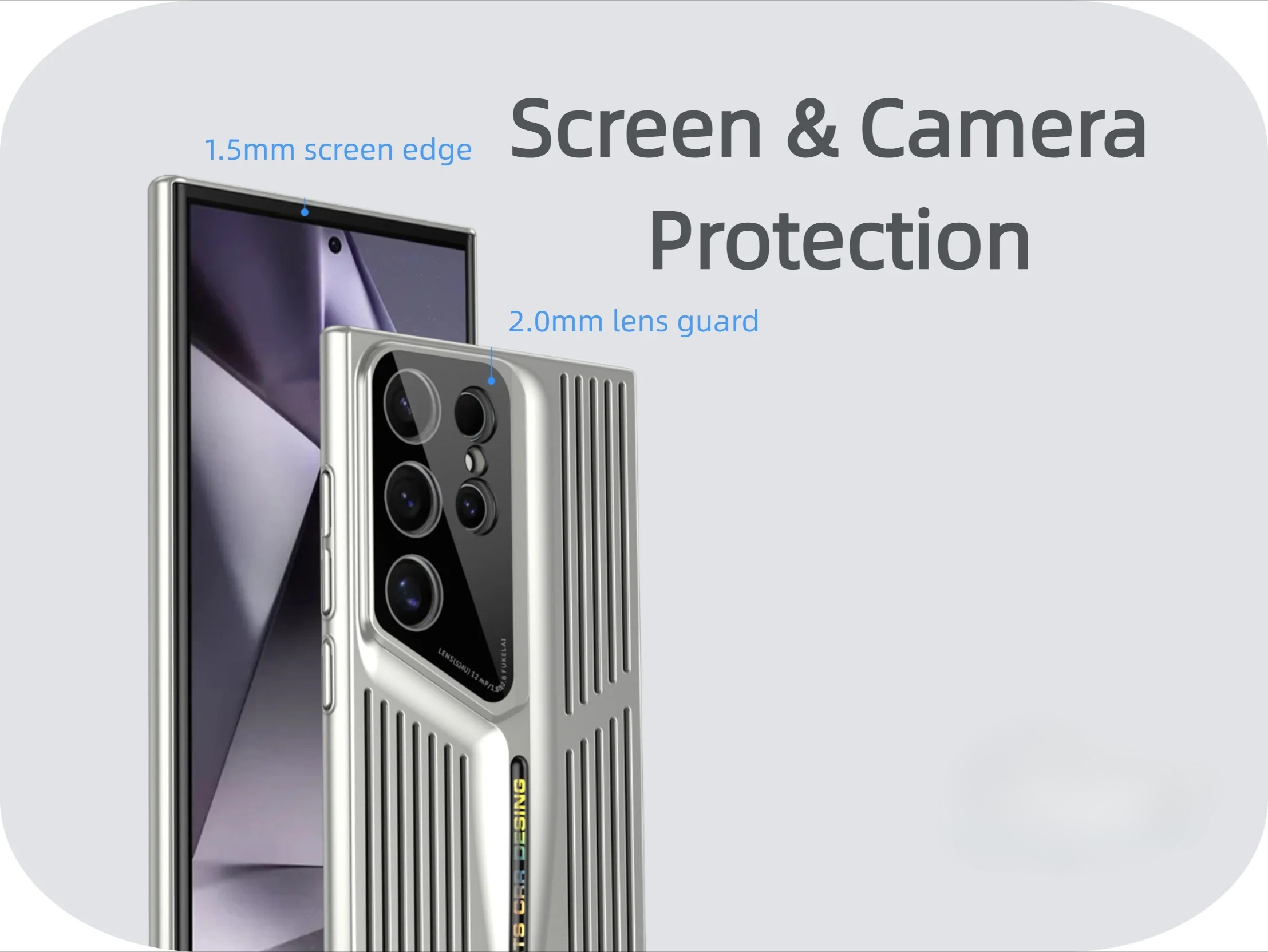 Raised 1.5mm screen edge and 2.0mm lens guard prevent scratches and contact damage.